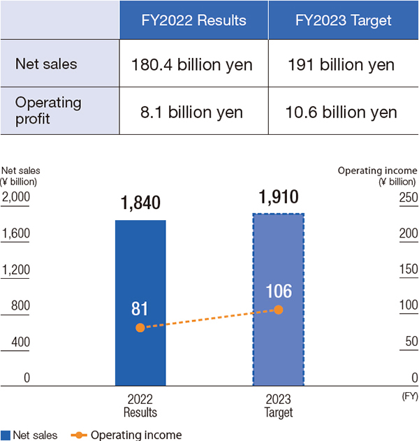 For FY2023, we achieved an operating profit margin of 6.8%, exceeding 4.5% in FY2022 and 6.2% in FY2021. Return on equity (ROE) was 6.0% in FY2022 and 5.8% in FY2021, and it recovered to 8.1% in FY2023. We hope to ensure that ROE will reach 9.1%, the peak it hit in FY2019, as soon as possible. Moreover, cash flows from operating activities reached an all-time high, and free cash flows turned from negative to positive. The equity ratio remains healthy at 68.6%.