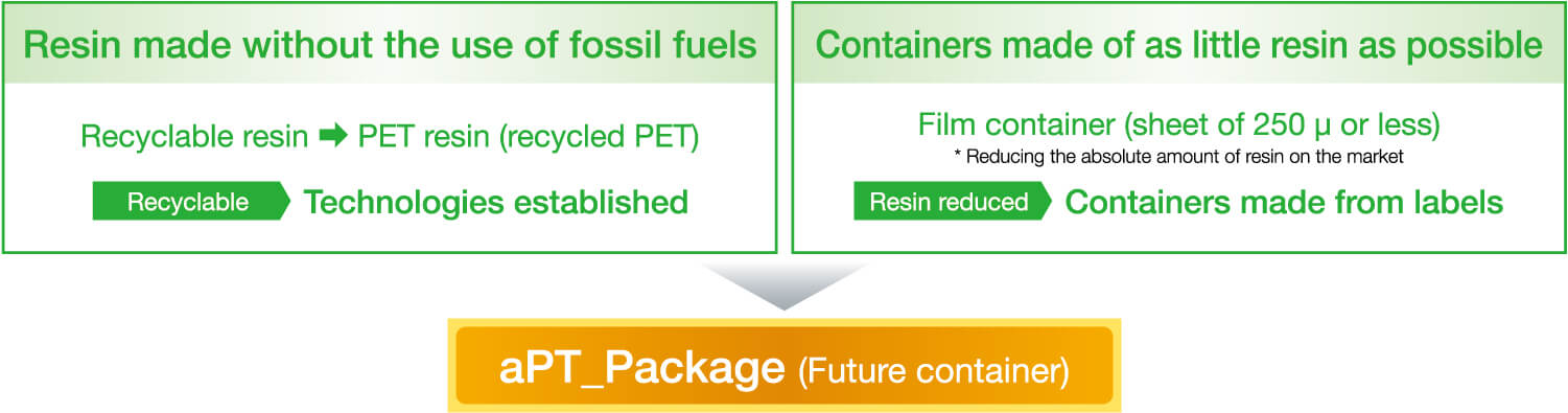 In the aPT business, we are developing future containers, defining them as 1) containers that are made of resin without the use of fossil fuels and 2) containers made of as little resin as possible.