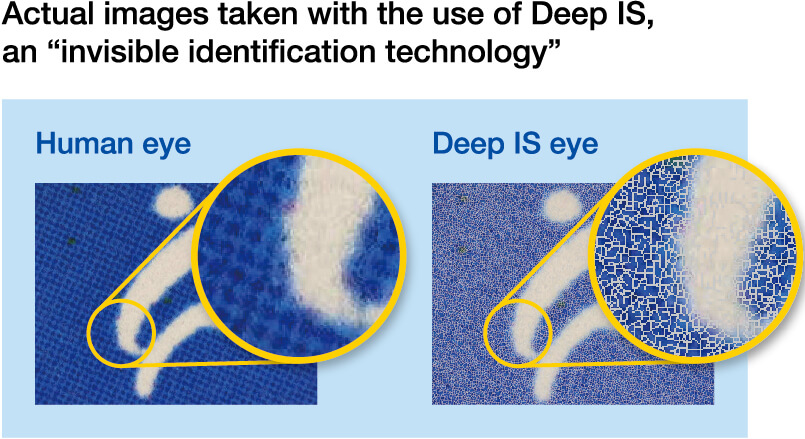 Deep IS is a completely new individual identification technology invented by a Swiss inventor to protect artworks from counterfeiting. The Fuji Seal Group has focused on the potential of this technology for applying to printed materials and has been supporting its development since 2019. As a result of work in Japan and Europe, the business was launched in 2021 to combat counterfeit European stamps, and in 2023 to combat the illegal resale of Japanese cosmetics. Deep IS is the ultimate in individual identification because it detects minute, irreproducible differences that naturally occur in printed materials. This identification requires deep insight, which is why we named it Deep IS. The system identifies these differences, registers the information, stores it on a server, and then calls it up when needed.